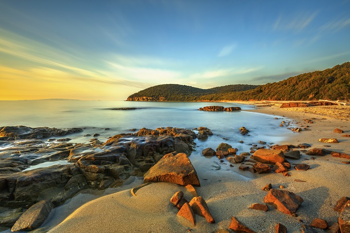 Sable blanc, eaux translucides, la petite plage de Cala Violina en Toscane possède tous les ingrédients pour mener la dolce vita à moins de 3 heures de route de Florence. Nichée au coeur d’une végétation luxuriante, cette superbe plage de la région de Maremme se trouve au sein de la réserve naturelle Bandite di Scarlino, ce qui lui permet de se classer parmi les plus belles plages d’Italie. Depuis le parking, il vous faudra parcourir 2 kilomètres en pleine nature avant d’arriver sur la plage.