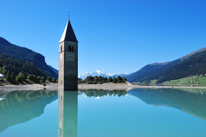 Si les lacs en Italie sont nombreux et tous différents, ce dernier n’a pas fini d’étonner les visiteurs. Près de la frontière autrichienne et suisse, en approchant du lac, vous ne pourrez cacher votre surprise. En effet, le clocher du village, anciennement englouti suite à la construction d’un barrage hydraulique, émerge des flots pour dominer la surface du lac. Ce site de plongée sous-marine hors du commun est une véritable curiosité locale.